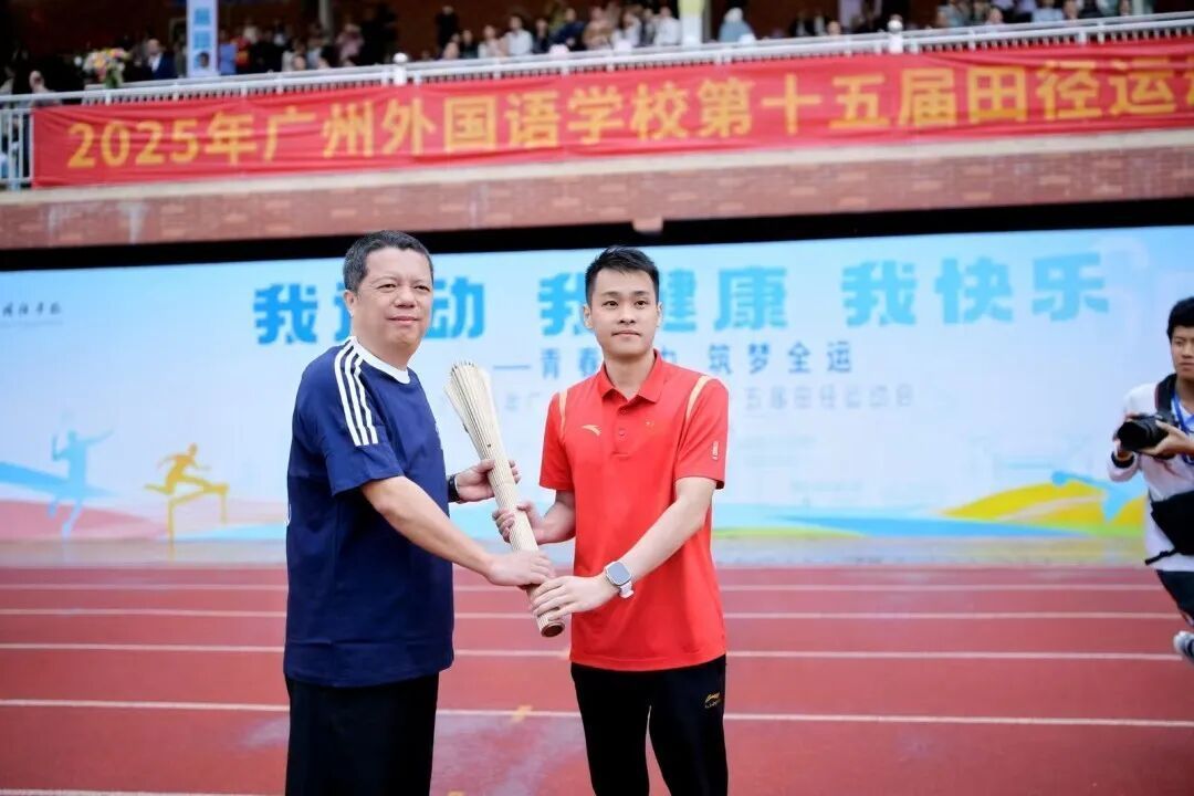 在广州异邦语学校的校运会开幕式上,胡伟京向全校师生展示了十五运会和残特奥会火把,并详备先容了其背后的内涵与寓意。十五运会和残特奥会的“源火”通过科技妙技在南海北部海域1522米深海处完成采集,火种于10月9日在南沙科考船埠点火。
