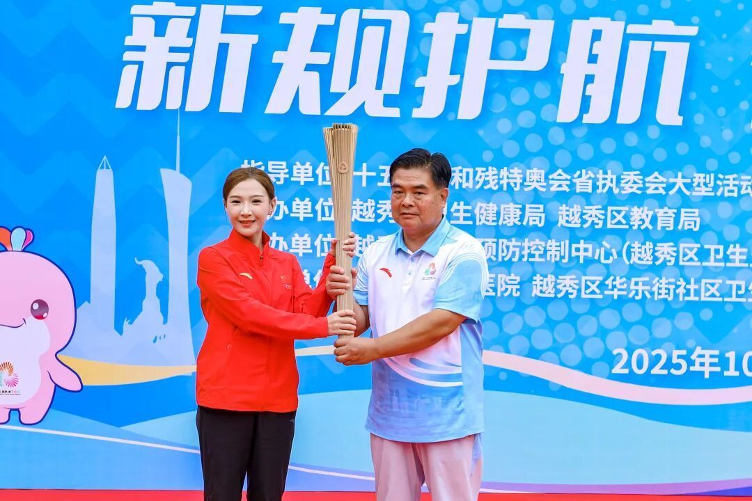 在迎全运“绚丽性火把传递”活动上,天下蹦床锦标赛冠军蔡琪子从十五运会和残特奥会火把传递职责指点部民众组组长胡伟京手中接过全运火把,在十五运会和残特奥会宣传推论曲《逐梦巅峰》歌声中,在体育、卫健、疾控、学生、磨真金不怕火等各范围代表中传递,终末,全场东说念主员高喊“科学通顺、健康体重、热诚全运、活力湾区”标语,在弘远青少年当中评释着体育精神传承与按捺的苍劲人命力。