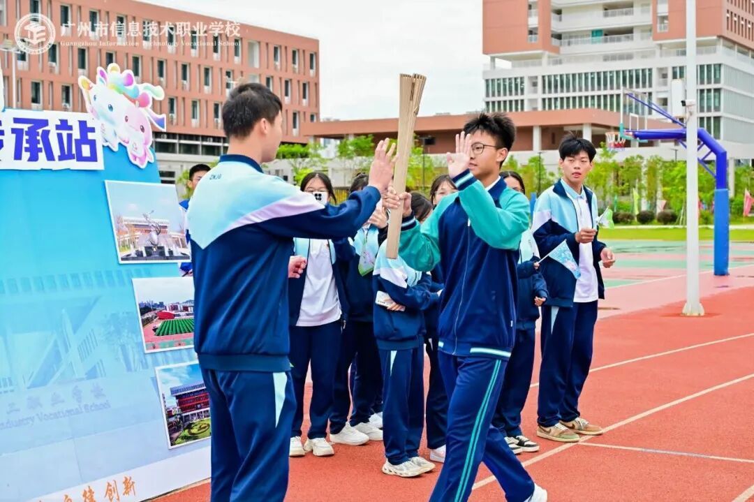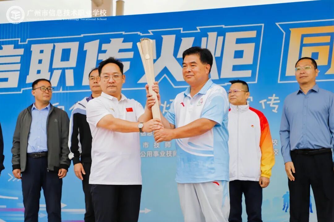 在绚丽性火把传递才气,由胡伟京组长在“主火把台”前将火把交予广州市信息技能行状学校校长刘冠明,再由刘冠明校长将火把交予学生火把手。随后,来自9所行状院校的54名学生火把手以整皆的三角队形行进,沿预定道路进行火把用功分段传递,由终末一棒火把手将火把带回“主火把台”完成统统传递才气。通盘才气绚丽体育精神兑当代际传承,并在新一代后生群体中传播与连接。